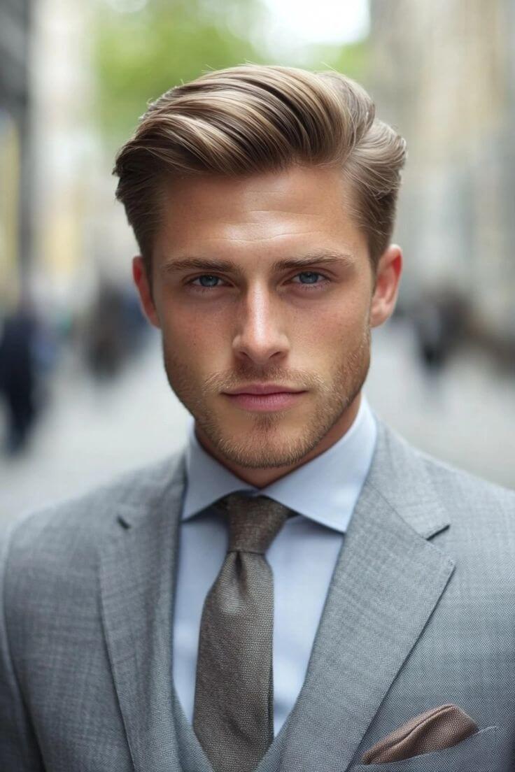 Soft taper on the sides with textured top creates a balanced look suitable for most men.