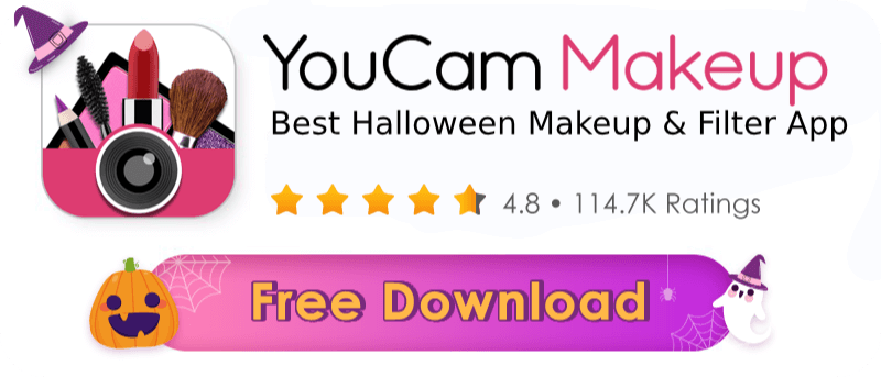 This spooky makeup filter is available when you use YouCam Makeup’s live makeup cam. Its winged eyeliner turns to spider webs, giving you a dramatic and artistic goth look.