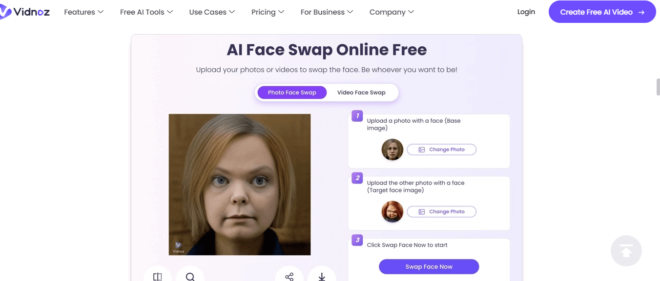 5. Vidnoz: Best Online Tool for Face Swap with Scary Characters