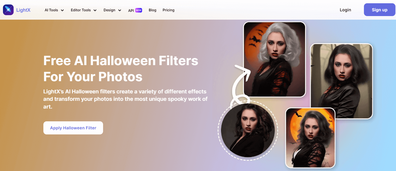 LightX offers a variety of AI-powered Halloween filters that can turn any photo into a spooky work of art.