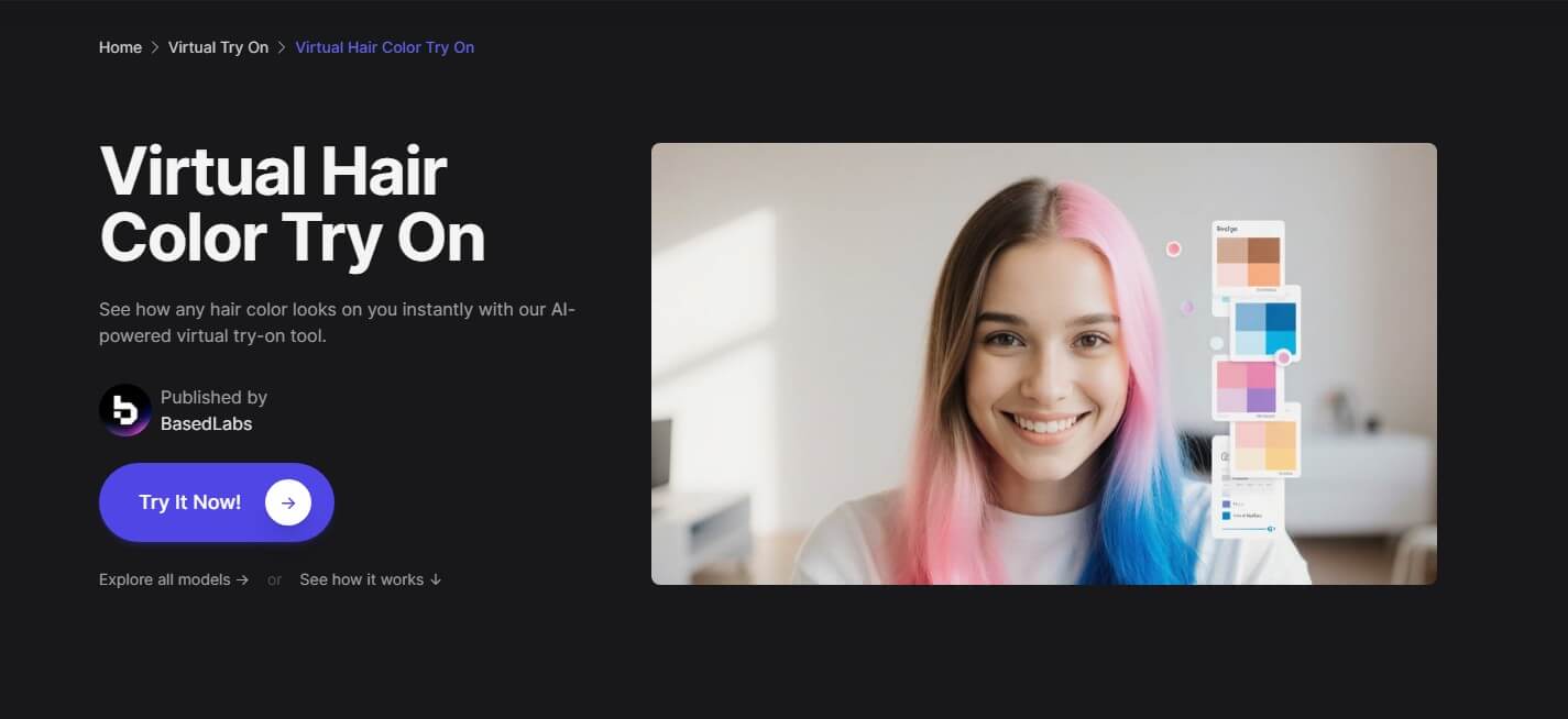 | BasedLabs | Focused on hair color try ons (unlimited) | Batch hair color try ons with quick presets and custom hex input |