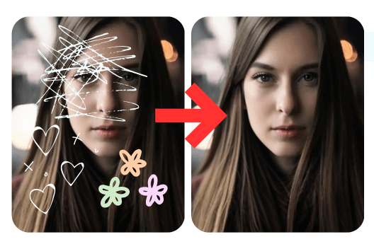 To remove scribbles from a photo, open the image in YouCam Enhance and use the AI Remove tool. Just brush over the scribbled area, and the app will intelligently fill in the background to make the image look clean and natural again — no advanced editing skills needed.