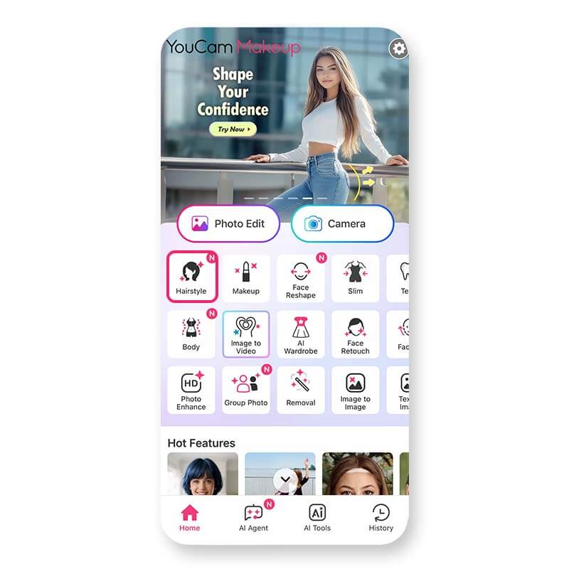 Step 1. Tap Hairstyle and upload your photo