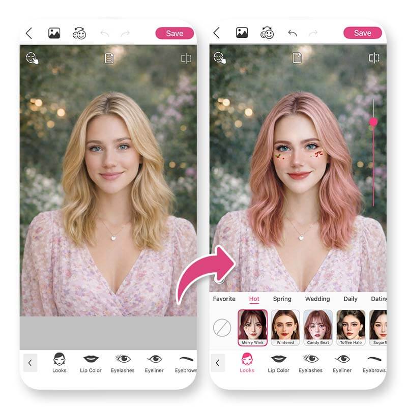 The Makeup feature allows you to try different makeup styles instantly. You can test: