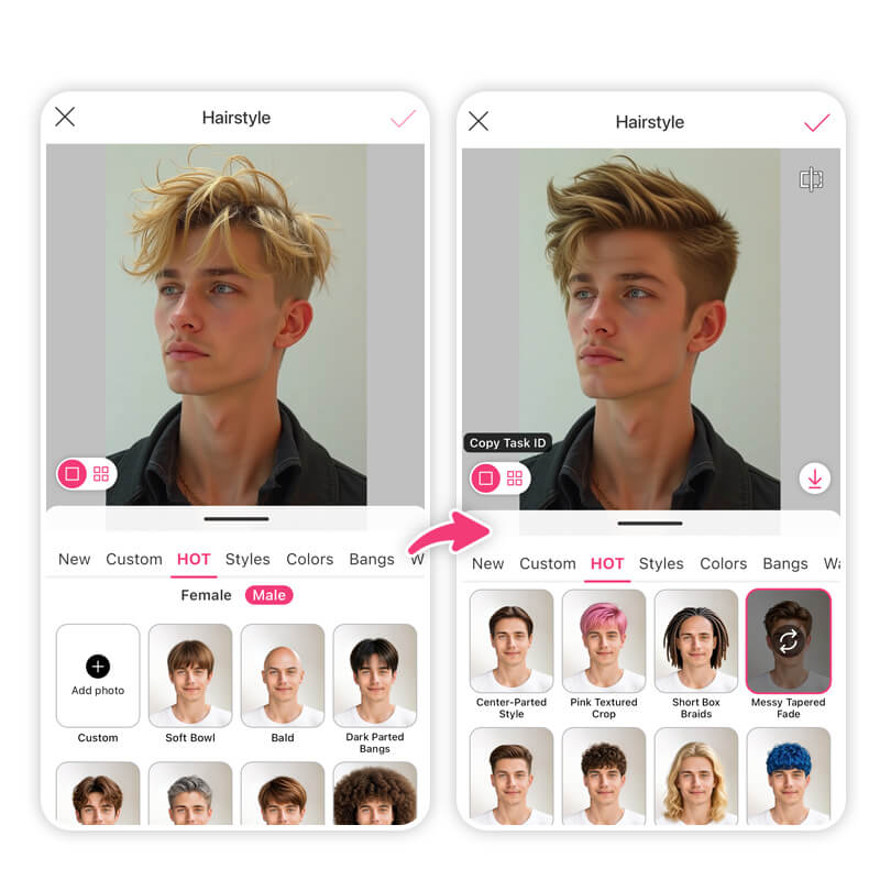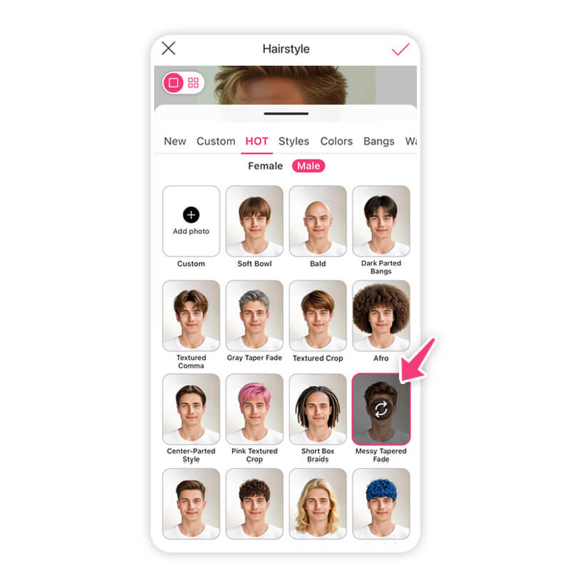If you want to quickly browse the most popular trends, the AI Hairstyle Tool is your best friend. It acts as a digital catalog where you can swap between curated styles with a single tap. It’s perfect for the man who wants to see how a specific category—like a buzz cut versus a quiff—actually balances with his face shape and jawline without any manual effort.