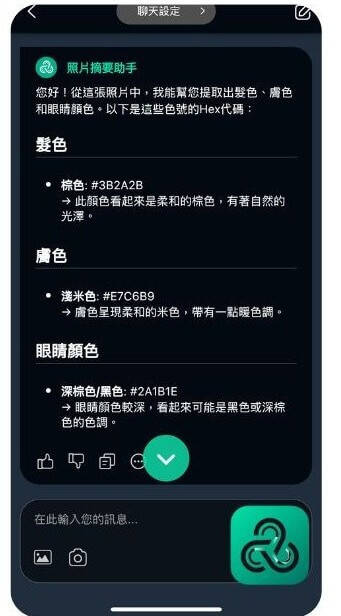 除了尋求專業顧問的協助外,也可以透過 玩美 AI Chat,上傳一張照片,請 AI 讀取肌膚的 Hex 色碼,快速判斷膚色屬性與底調,作為個人色彩診斷的依據。這種方式就像在建立屬於自己的「數位色卡」,能更直觀地了解哪些色系能襯托膚色、哪些容易顯暗。 之後再搭配 玩美彩妝 App 試唇膏、髮色或服裝顏色,親眼比較不同色彩在自己臉上的效果,輕鬆找到最能突顯氣質的專屬配色。