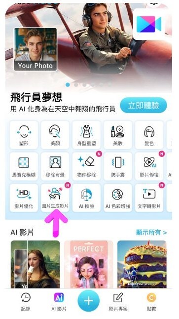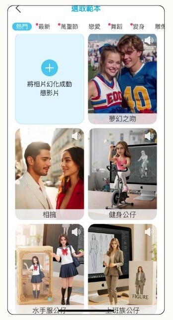 玩美 Video 是一款專門打造 AI 影片動畫 的 App,不同於一般的照片轉影片工具,它直接提供多種 AI 影片模板,讓你一鍵生成想要的影片。