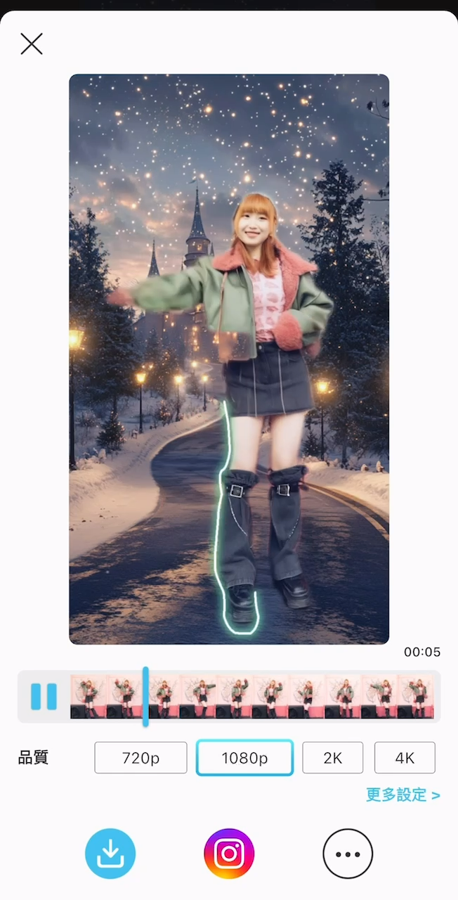 不同於一般特效 App,玩美 Video 採用最新的 Kling AI 模型作為圖片轉影片的核心技術,能夠更精準地還原人物動作與細節。