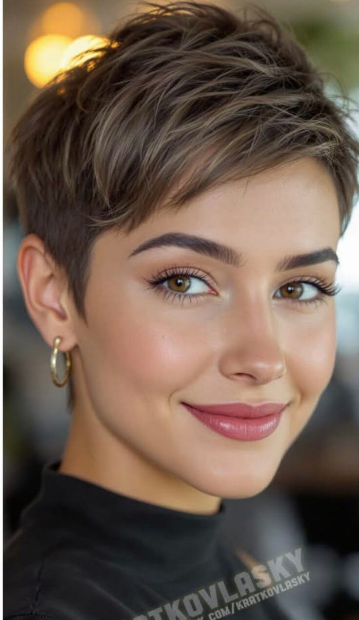 Pixie cuts are often feared by those with rounder faces, but they can be incredibly slimming. The secret lies in adding volume at the crown.