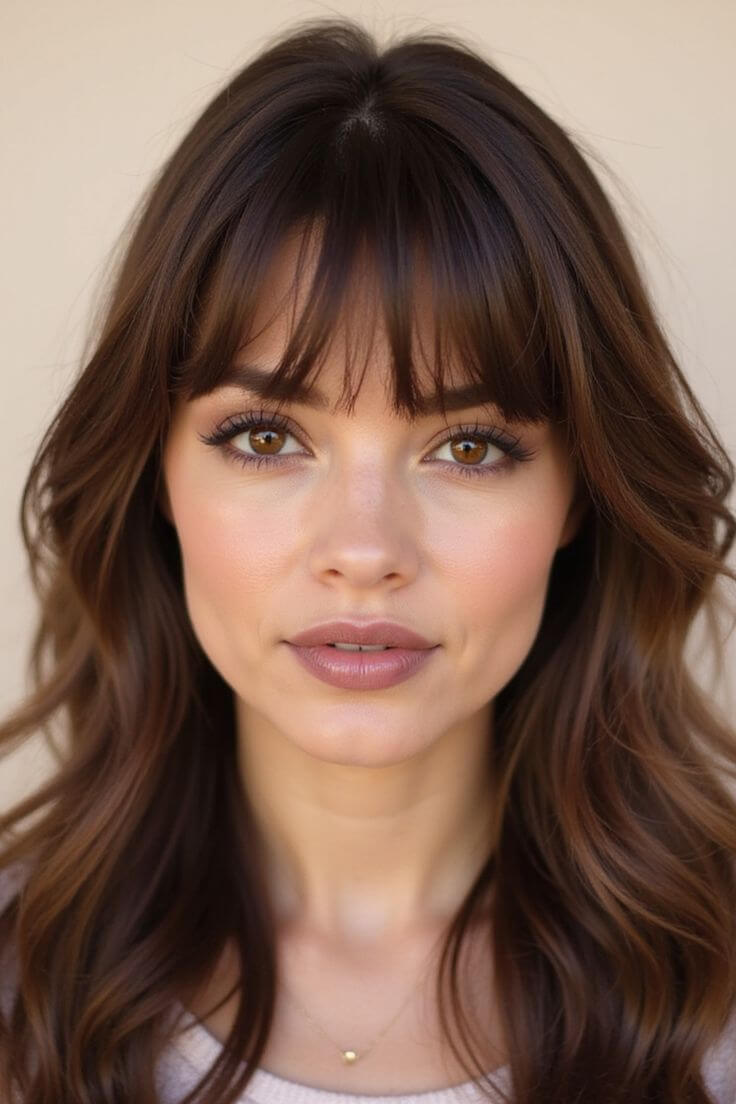 Avoid heavy, blunt bangs which box in the face. Wispy strands add softness.
