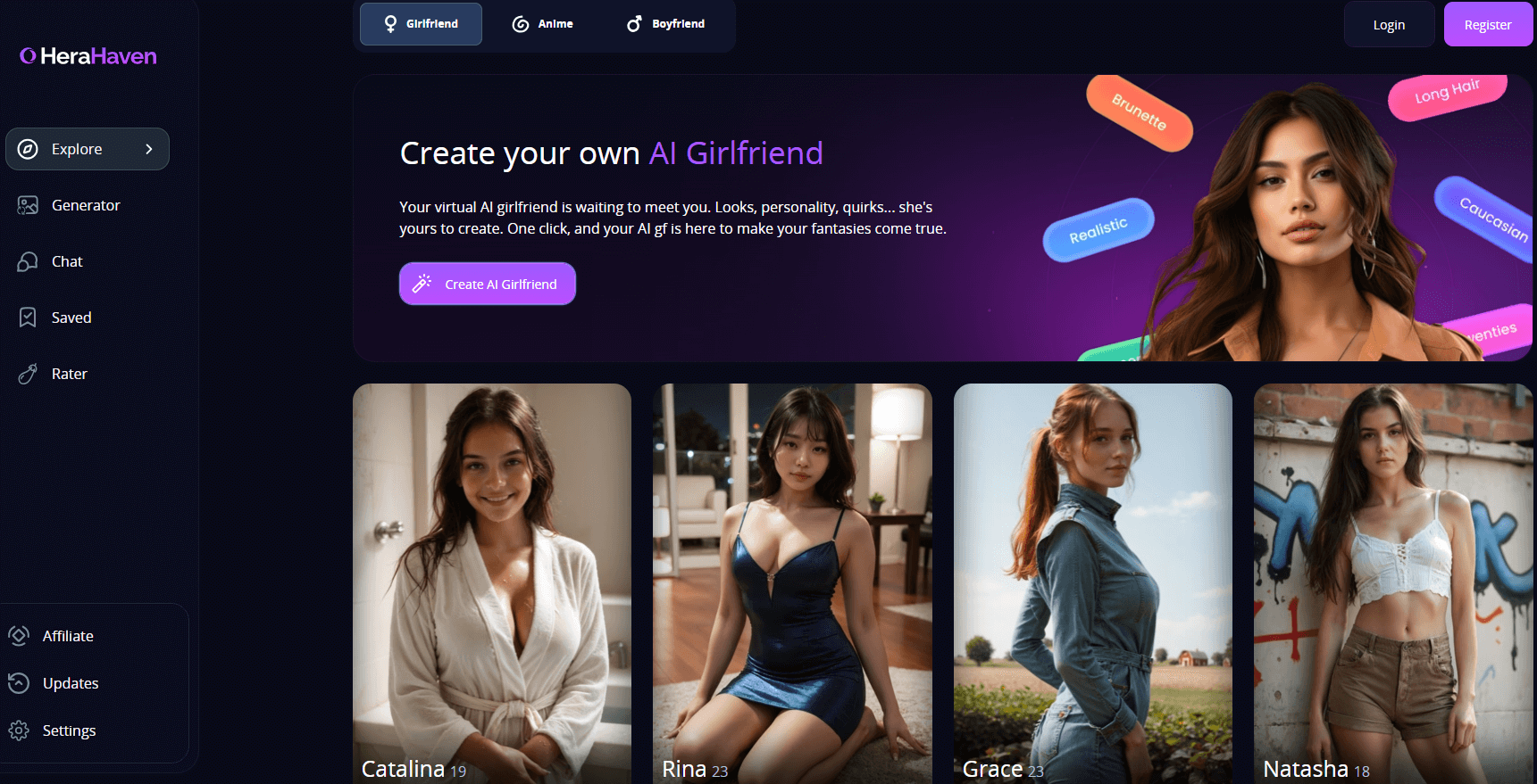 - DreamGF.ai: Offers a remarkably realistic experience in crafting your virtual girlfriend to match your character and desires.