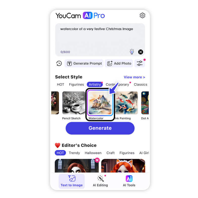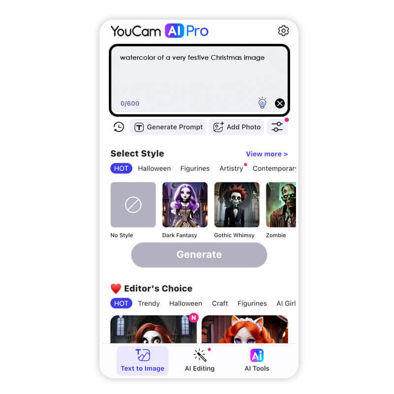 YouCam AI Pro is a top-notch AI Christmas Photo Generator app that allows you to create stunning AI Christmas photos with various enchanting art styles. You can transform your pictures into festive masterpieces, perfect for sharing with friends and family during the holiday season.
