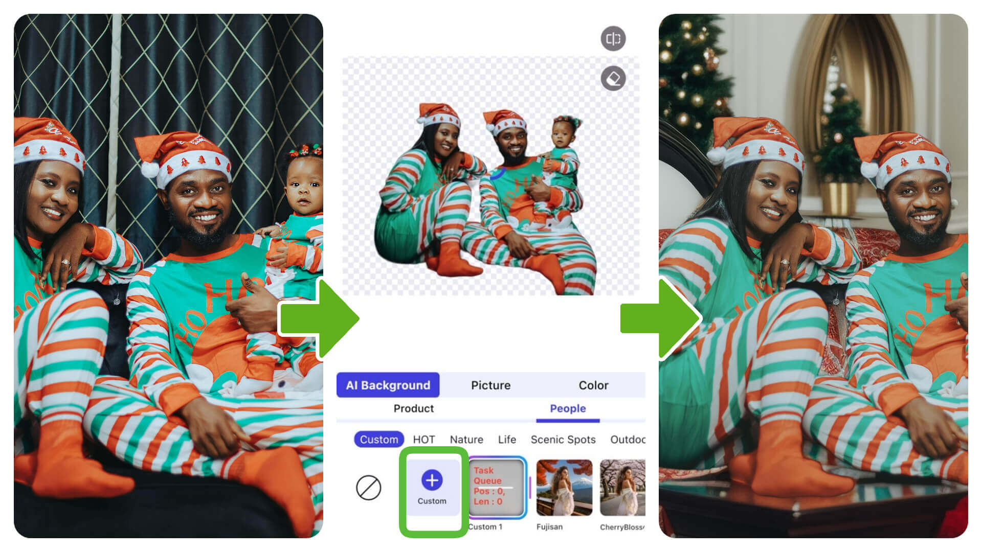 - Step 4. Select AI Background for Family Christmas Pictures: Choose a warm Christmas background or generate a new one using AI.