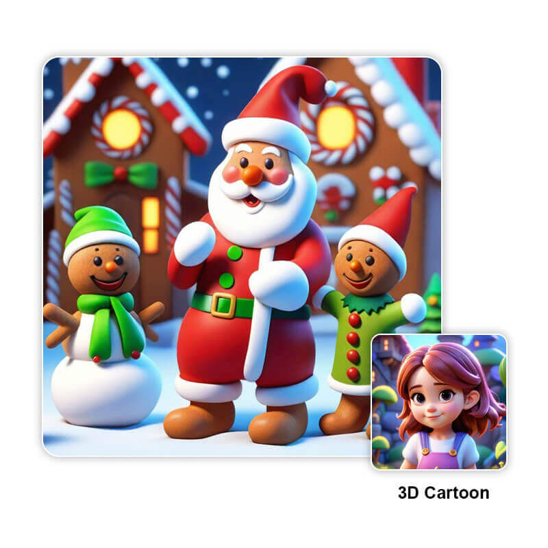 - Select a Style: Choose from several styles to give your image the perfect festive touch. Options include Gingerbread Style, Winter Whisper, 3D Cartoon, Pop Art, and Oil Painting.