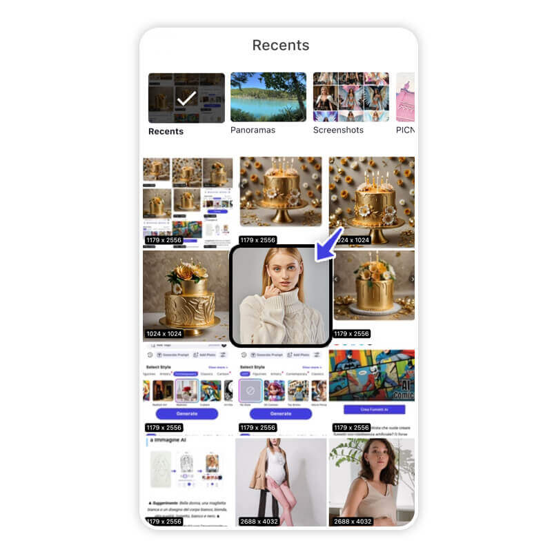 In the app, you can upload an existing photo from your camera roll or take a new one with the app. For best results, choose a photo with high resolution and good lighting.