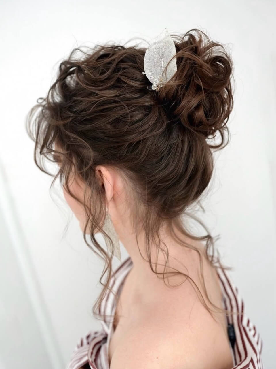 Perfect for those who prefer an effortlessly chic look, the low messy bun exudes a relaxed yet elegant vibe. This hairstyle works wonders for showcasing a striking neckline, making it an ideal choice for those with intricate dress designs.
