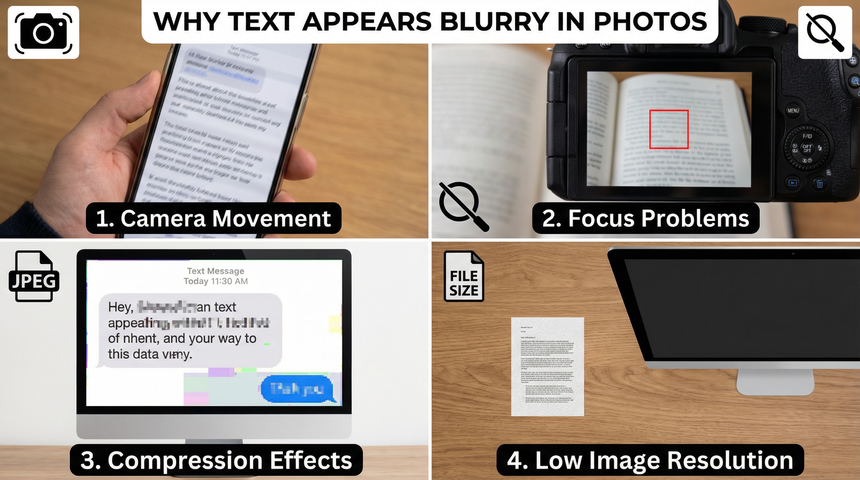 - Camera Movement: A frequent culprit is slight camera shake, which happens when the device shifts even a little during capture. This motion causes the whole image—including any text—to lose sharpness.