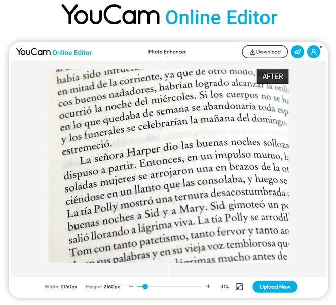 This AI blur remover is fast and easy to use. With AI lighting and color correction, every word becomes clear and visually sharp.