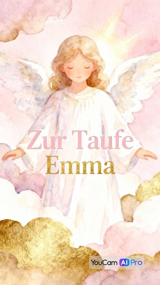 Mit App YouCam AI Pro erstellst du in wenigen Minuten wunderschöne, personalisierte Glückwünsche zur Taufe – als digitales Bild für WhatsApp oder als Vorlage für eine gedruckte Karte.