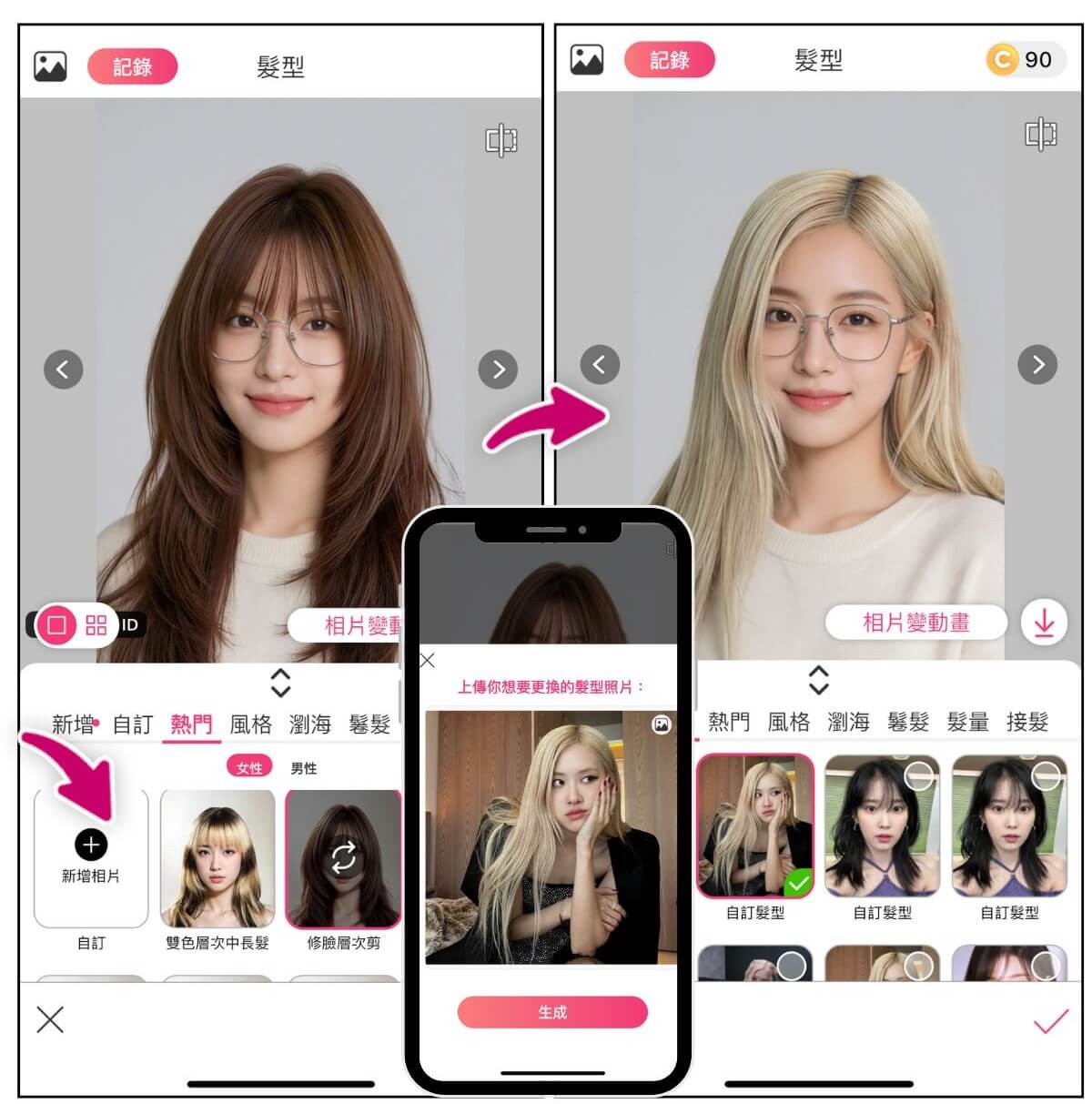而且除了 App 內的熱門髮型模板以外,妳還可以透過自行匯入髮型功能進行套用。