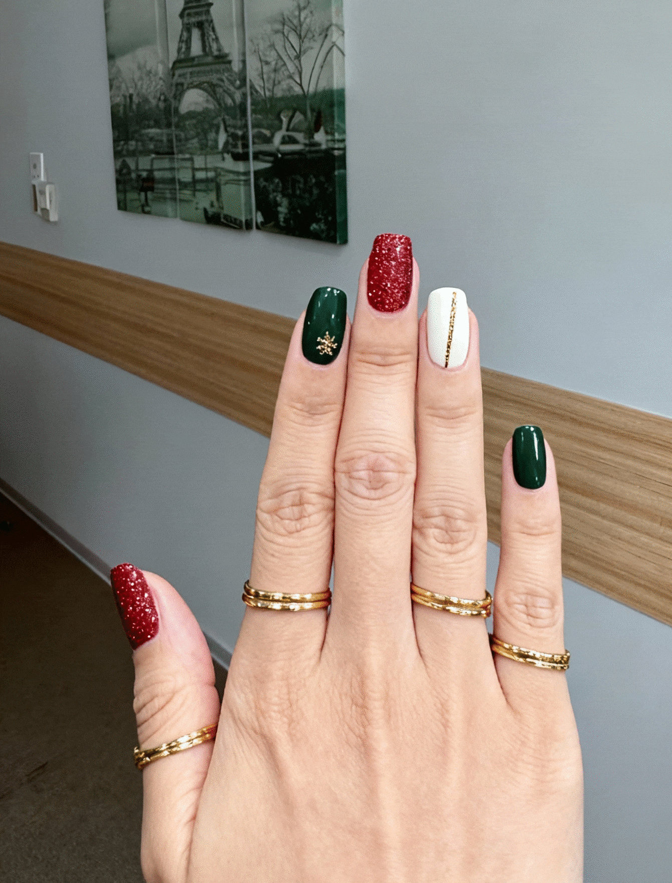聖誕美甲範本一: 經典紅綠混搭