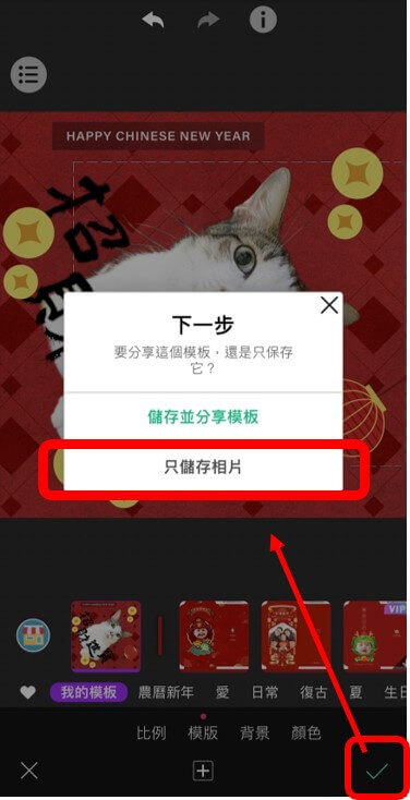 ▲ 在 App 社群內可以找到方形春聯版型或到【模板】功能將模板調整成 1:1 方形春聯的尺寸