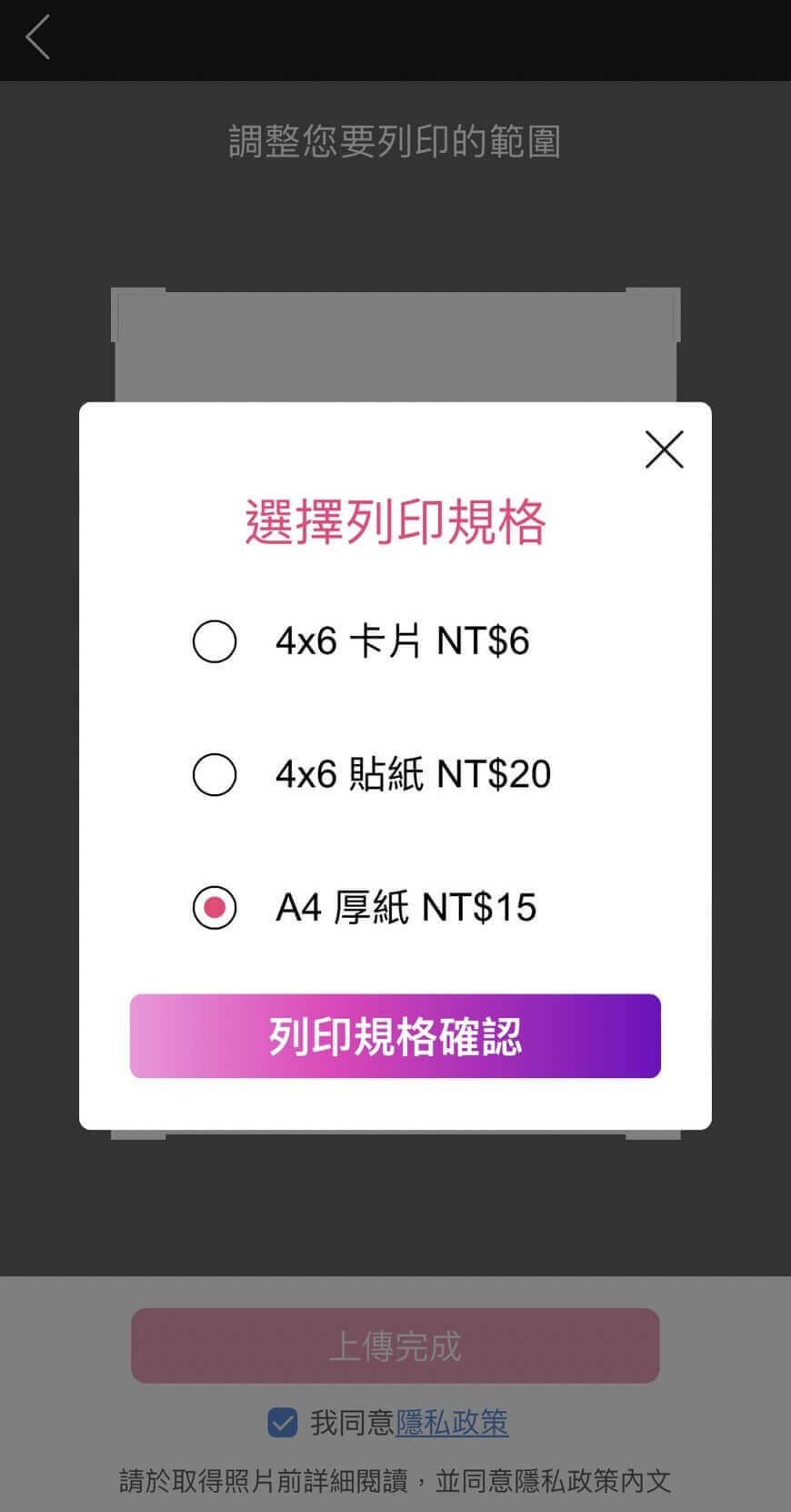 ▲ 確認圖片規格,這裡官方建議是不要調整尺寸,印出來才不會太小