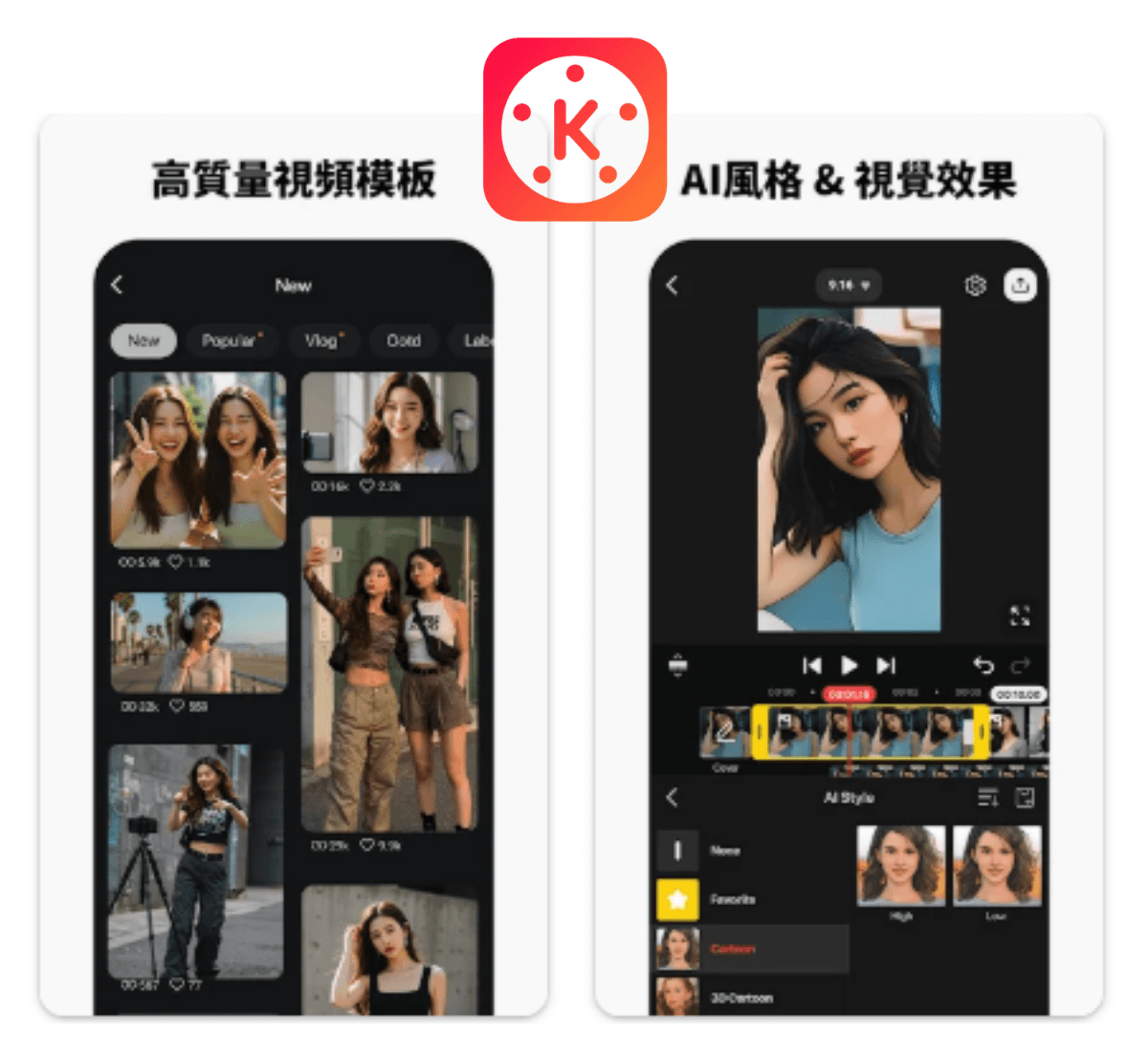 這款 App 內建 AI 智慧剪輯功能,能自動識別影片精華段落、一鍵生成短片,以及多樣素材庫省去大量手動剪輯時間,適合製作 YouTube Vlog、教學影片或品牌宣傳短片。