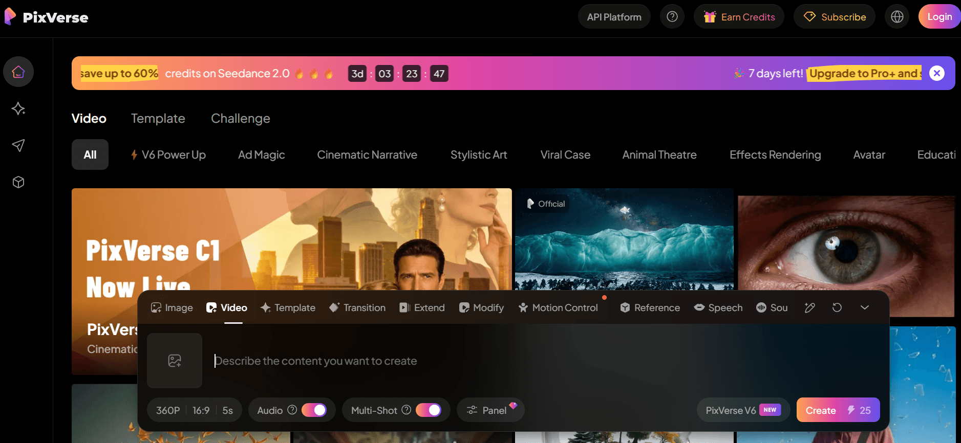 適合族群: 需要高度靈感來源或視覺效果的短影音創作者,因為 Pixverse 有一系列能夠觀看他人作品的區域。