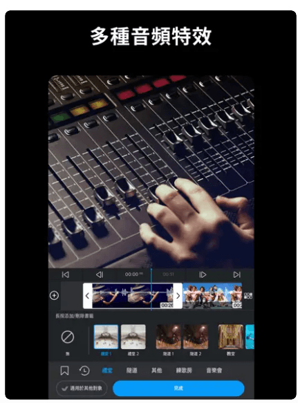 VLLO 是一款適合日常剪片與 Vlog 使用的多功能 App,免費版已包含多數編輯功能。與聲音相關的支援包含: